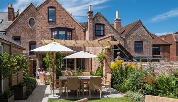 Outside dining area in garden at One Holyrood, B&B, Newport, Isle of Wight
